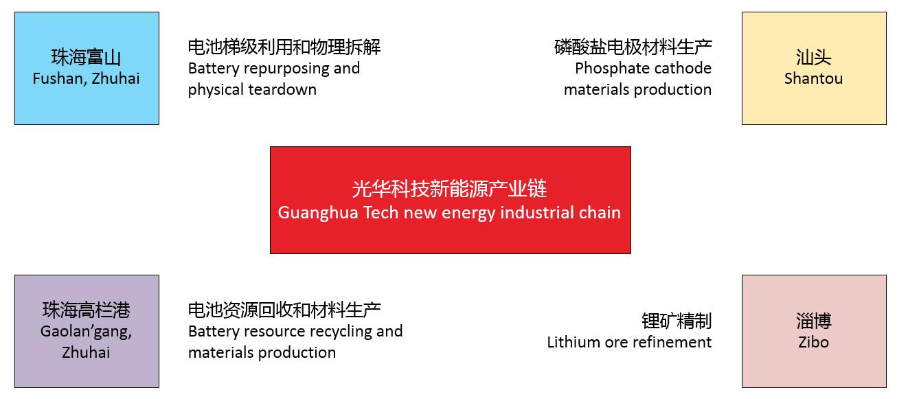 目前,公司積極推進自有技術的產業化,分別通過汕頭(磷酸鐵鋰、磷酸錳鐵鋰等磷酸鹽)、珠海富山(梯級利用)、珠海高欄港(過渡金屬化合物、氧化物電極材料及其前驅體)、淄博(鋰精礦)等區域布局,形成了系統的動力電池全生命周期產業鏈。