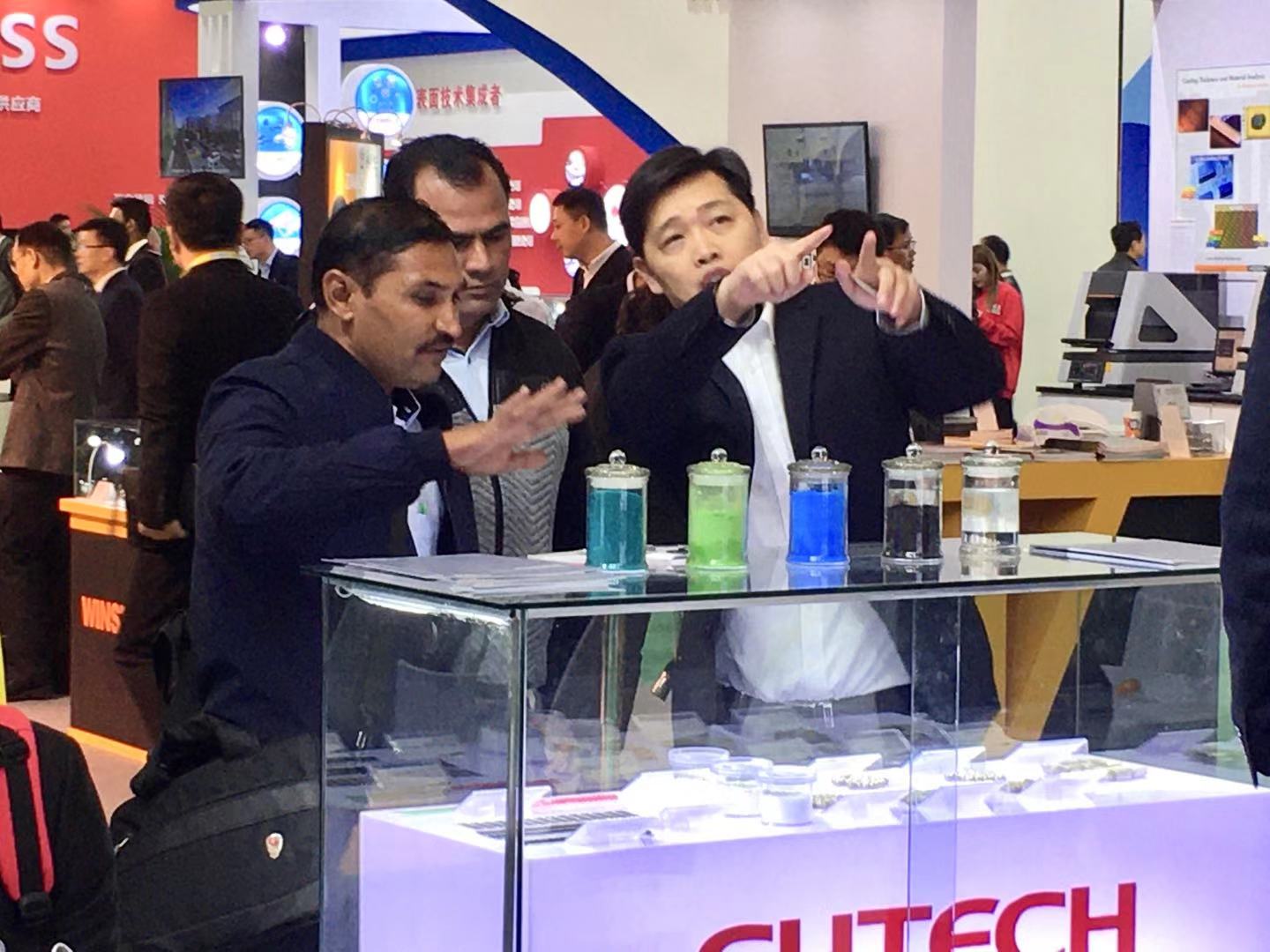 本次光華科技也帶來了專為塑膠電鍍前處理、功能性電子電鍍、裝飾性電鍍、化學(xué)鍍等工藝過程深度配套的金屬化合物、電鍍添加劑、金屬陽極及其他專用化學(xué)品四大類產(chǎn)品,現(xiàn)場(chǎng)還有資深的技術(shù)人員與大家交流技術(shù)經(jīng)驗(yàn)和解答疑難問題,展位上熱鬧非凡。