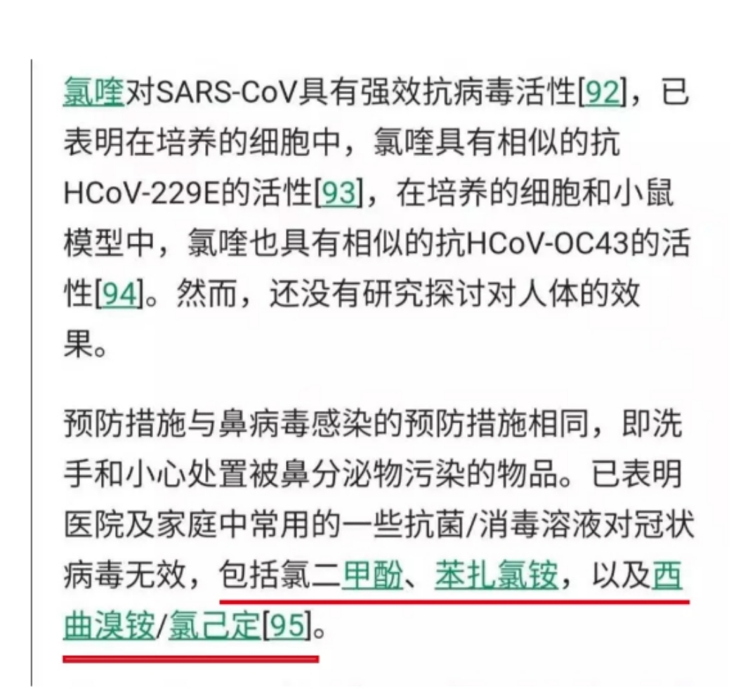 根據 UTD 資料顯示:已表明醫院以及家庭中常用的一些抗菌/消毒溶液對冠狀病毒無效,包括氯二甲酚、苯扎氯銨以及西曲溴銨/氯己定等。